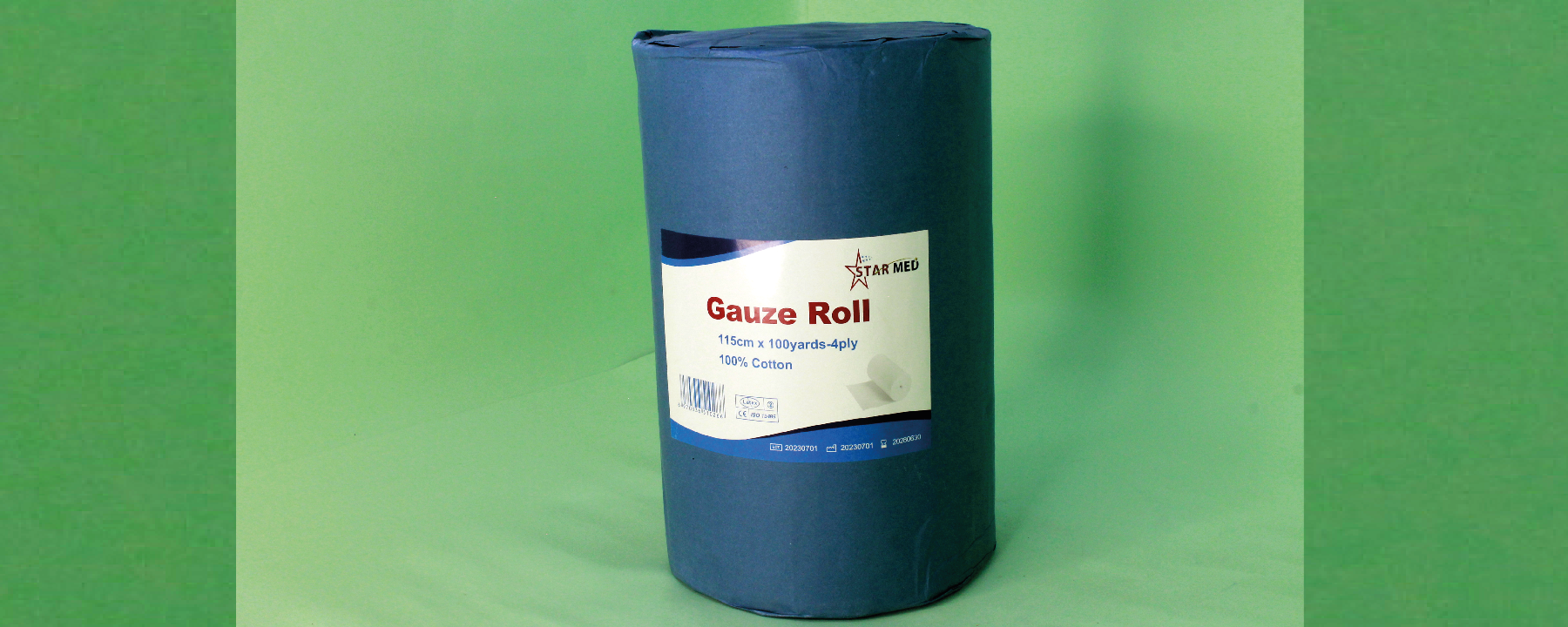The GAUZE ROLL is a medical dressing used for covering and bandaging wounds. It comes in a long roll of cotton gauze, making it suitable for applications that require extended lengths of dressing, such as covering large wounds or for use as an absorbent material. The gauze is highly absorbent, helping to keep the wound dry and clean. It is commonly used in hospitals, clinics, and for everyday medical practices.