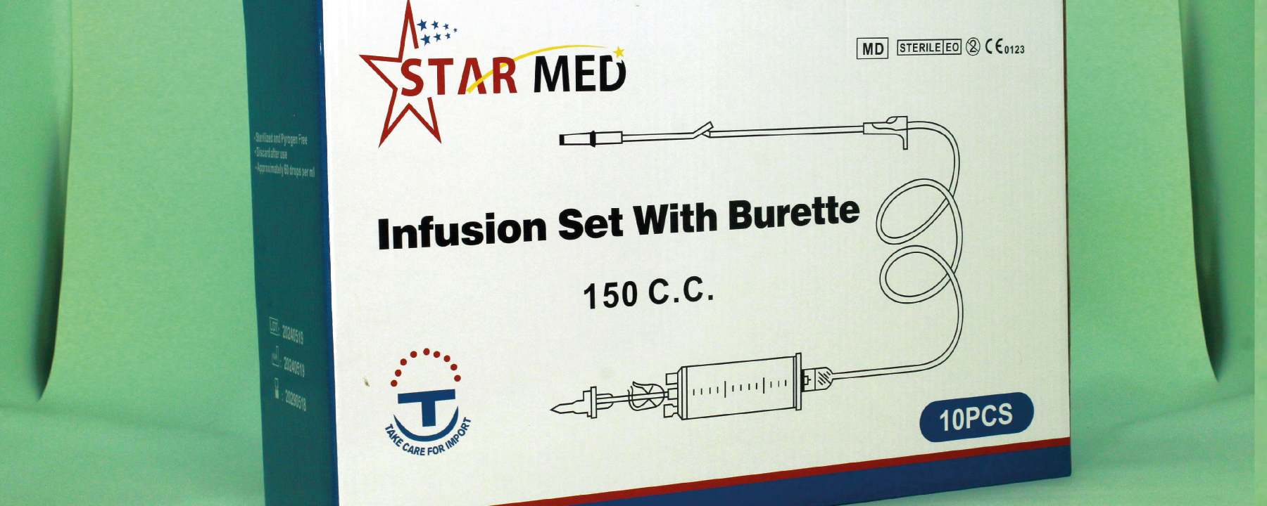 Intravenous infusion set equipped with a 150ml burette and microdrip system for precise fluid control. Made from medical-grade materials, ideal for hospitals and clinical use, especially in pediatric or critical care settings requiring accurate drip rates