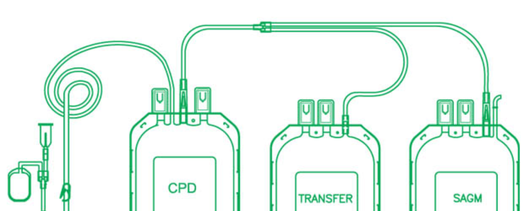 Triple blood bag designed for collecting and separating whole blood into components (plasma, red cells, and platelets). Includes one primary bag for collection and two satellite bags for component transfer after centrifugation. Comes with sterile tubing and needle, suitable for blood banks and hospital use.